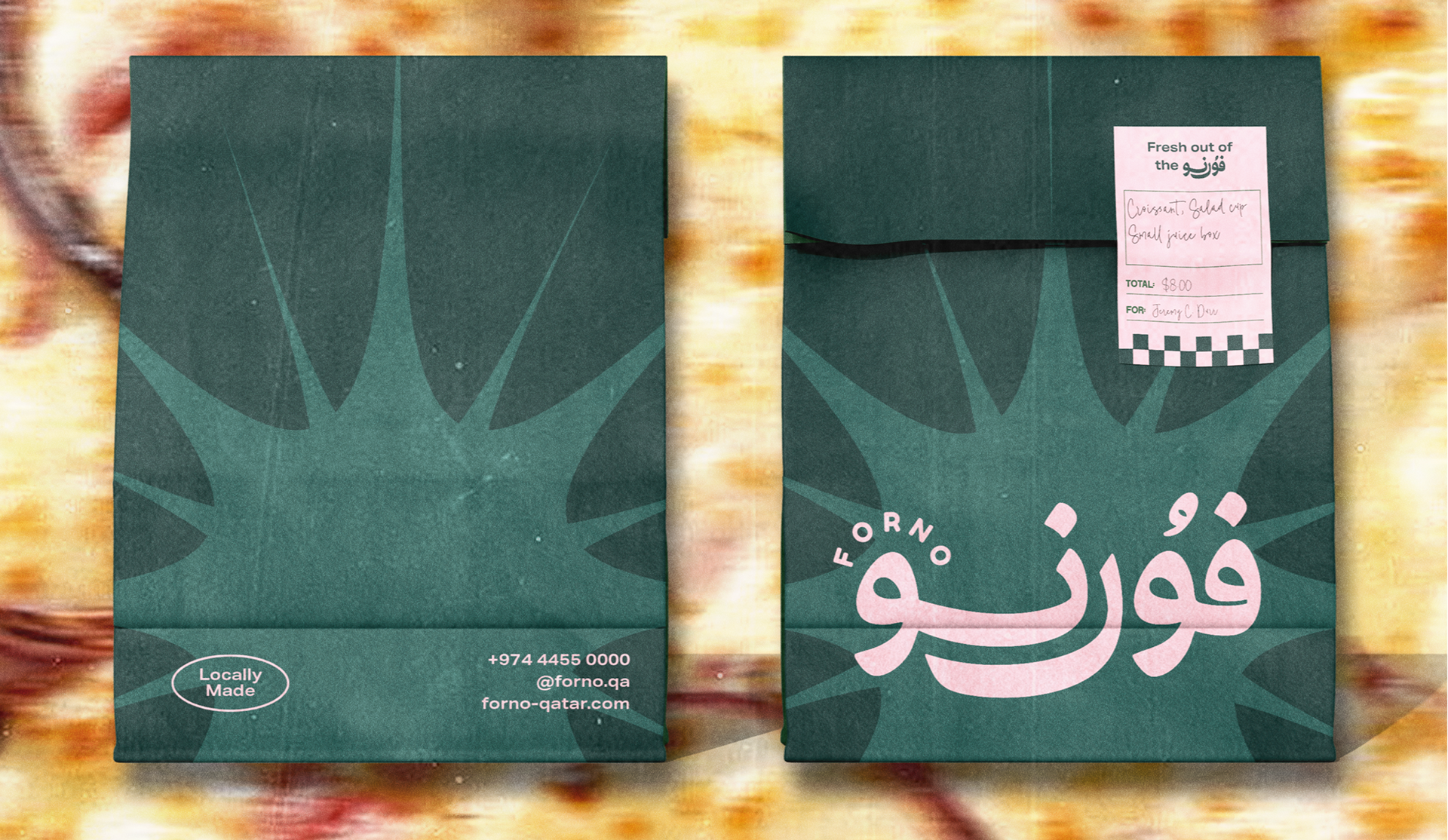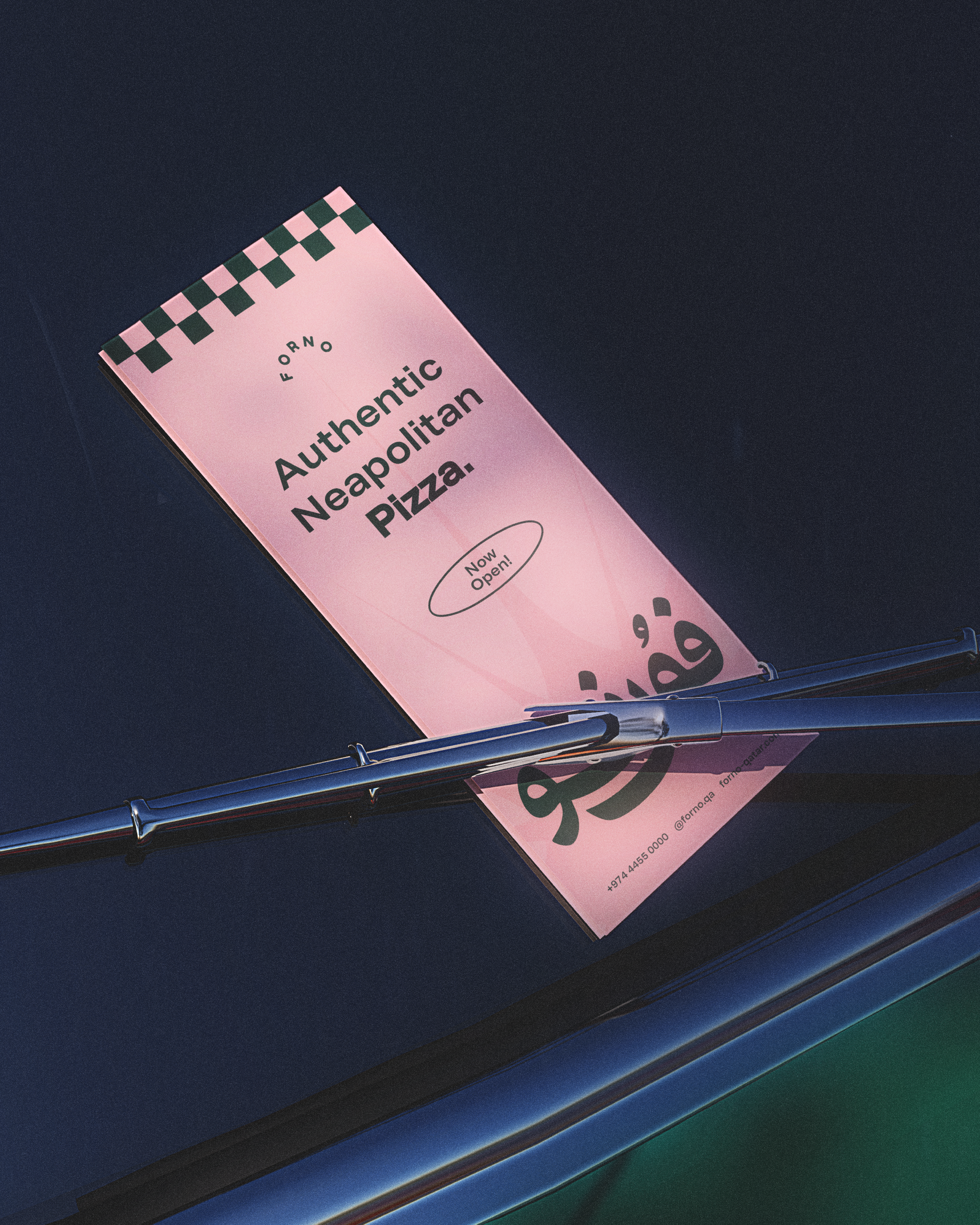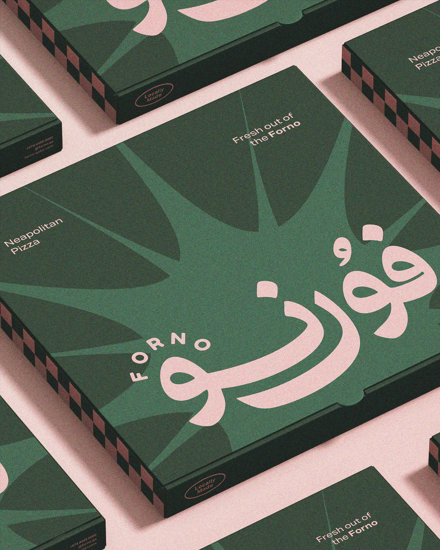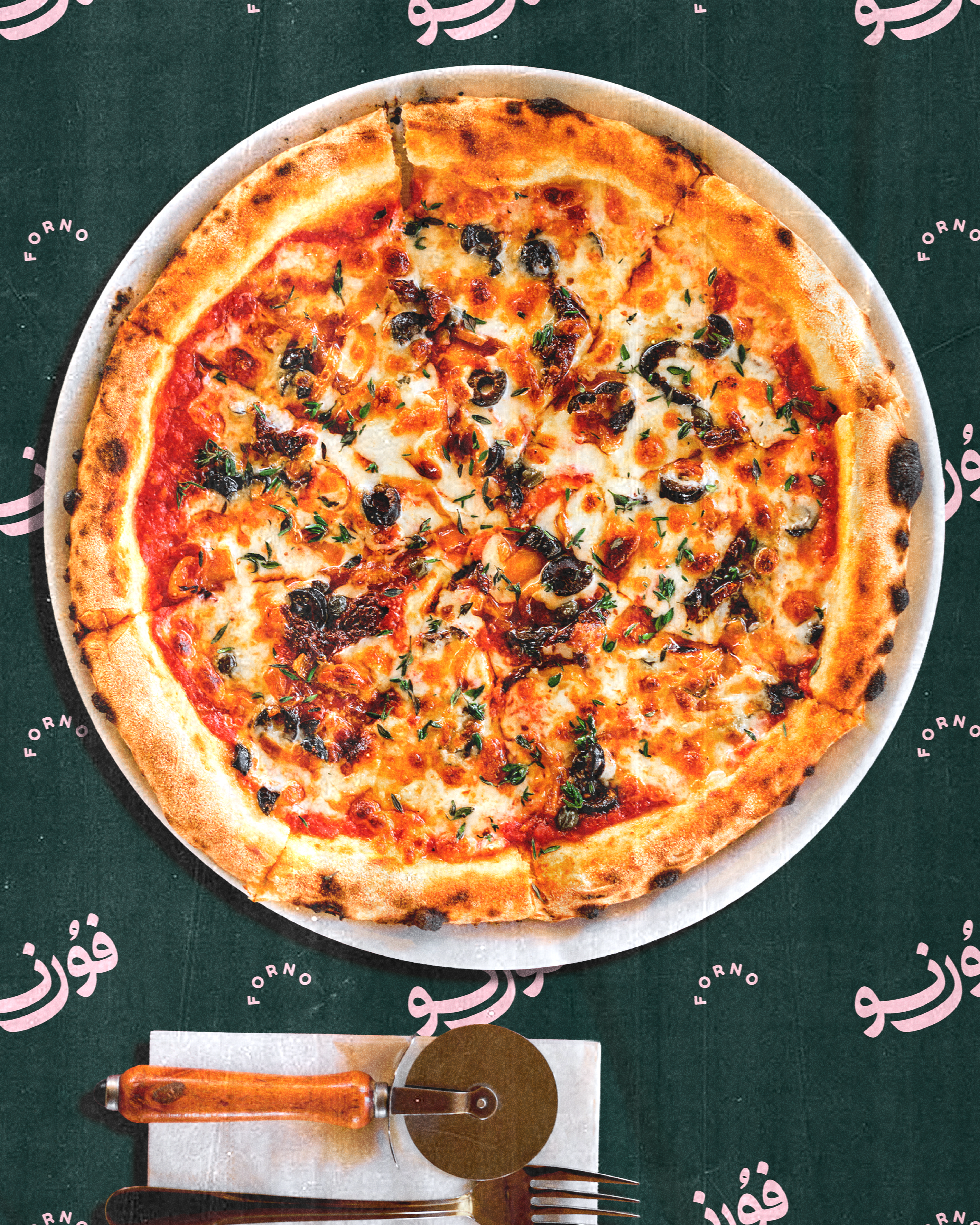 Introducing Forno, a local pizza kitchen with authentic Neapolitan flavors, a retro spirit, and a custom Arabic logo that celebrates the craftsmanship and culture of the brand.